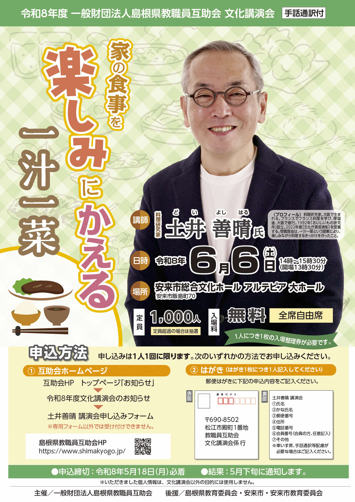 ◎土井善晴講演会 申し込みフォーム